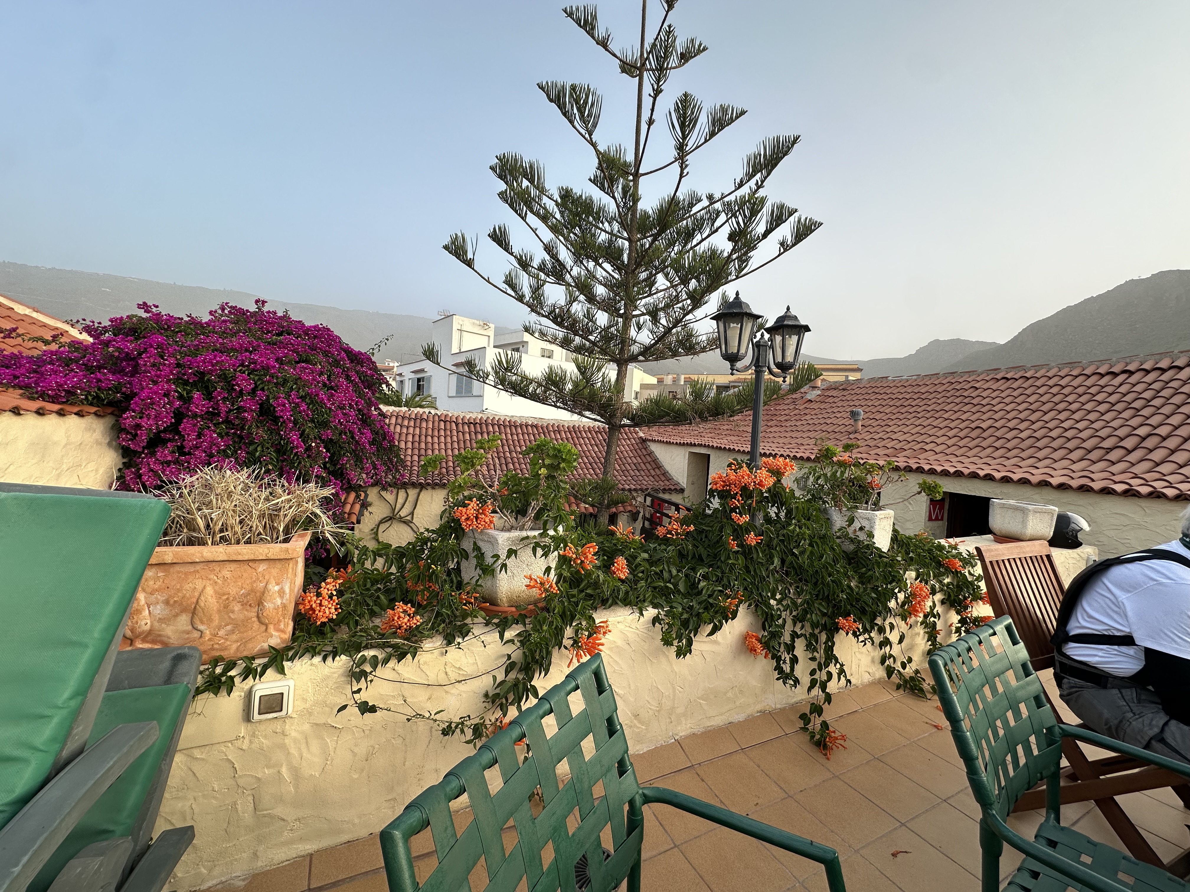 Vi bor hos Johannes och hans fru Mariluz på en gammal bondgård från 1800-talet i en bergsby ovanför turistorterna. Boendet är enkelt och lantligt (även om närmaste granne råkar vara en populär italiensk restaurang där vi ofta äter middag). Inredningsstilen är lite ålderstigen – men med en kall dryck på takterrassen när solen går ner och dagens äventyr summeras blir stämningen svårslaget avkopplande.