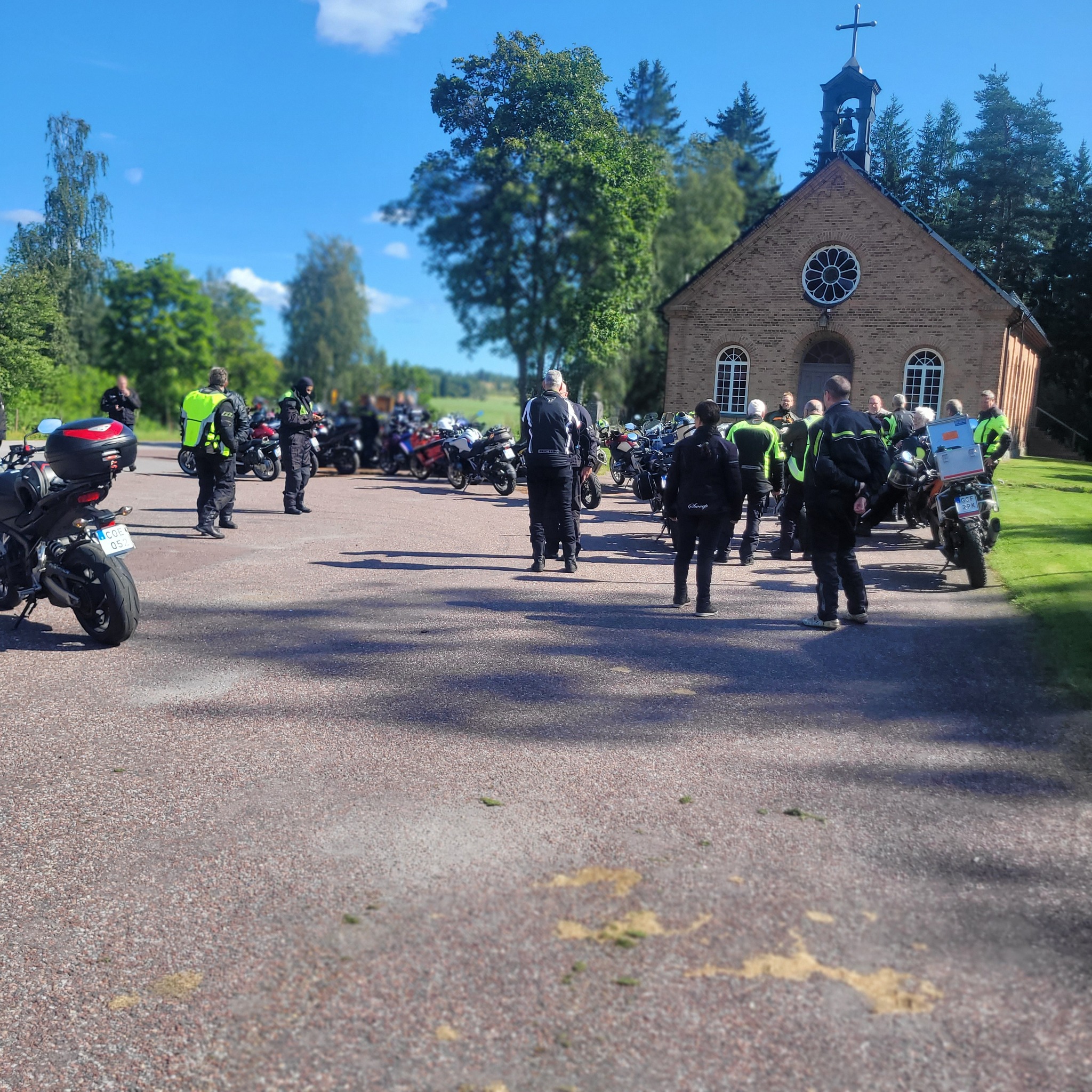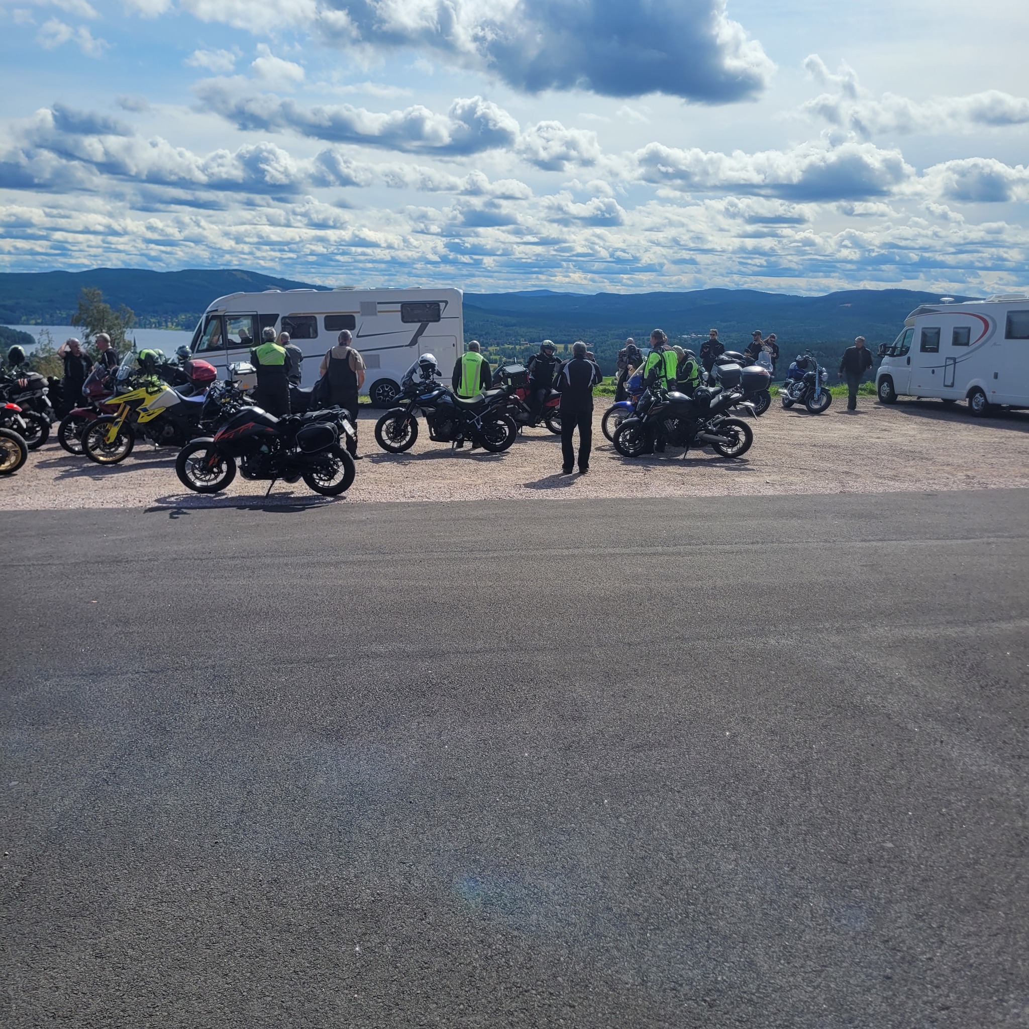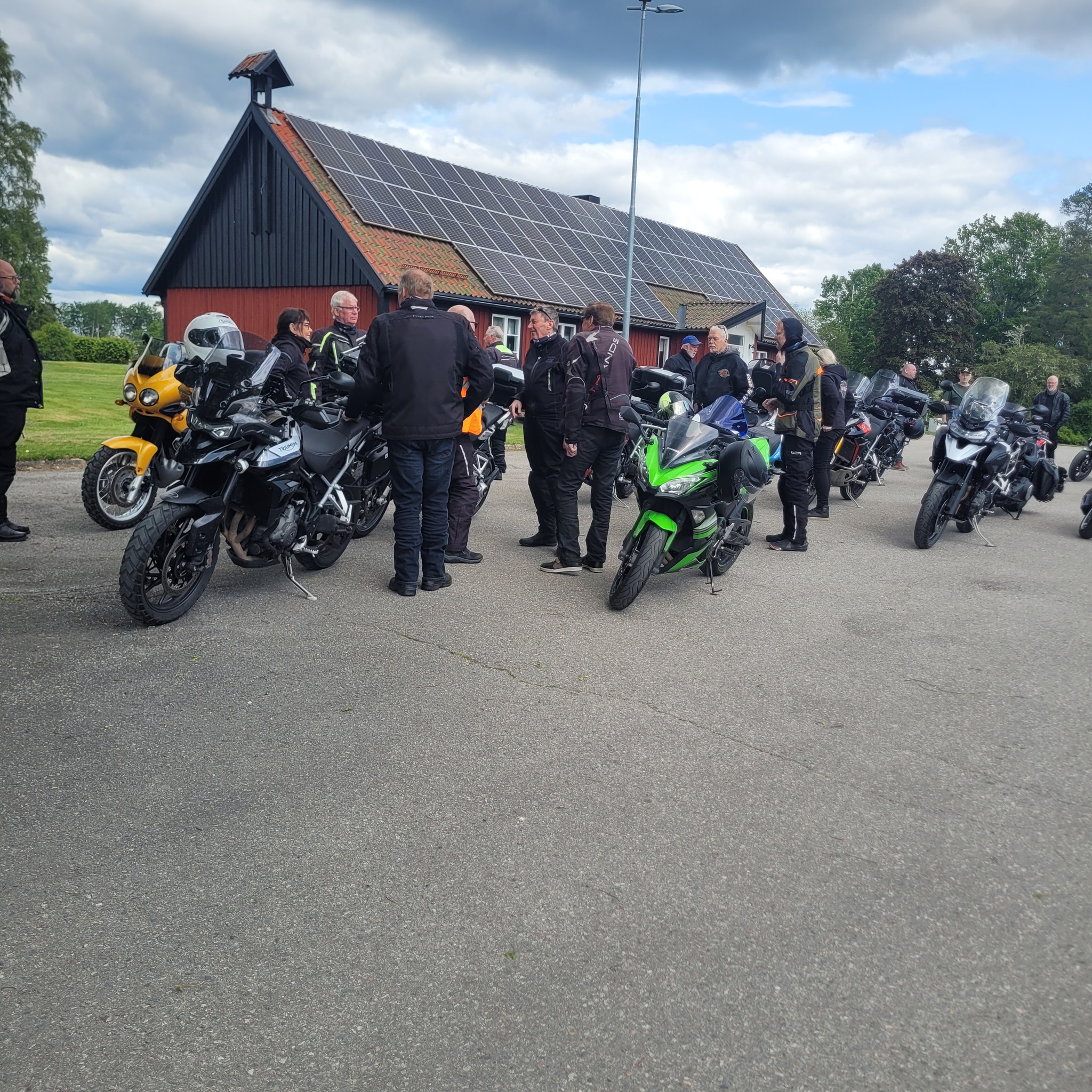 Dagtidstouringen lockade mycket folk denna gång. Vi hade besökare från bland annat Trosa, Mockfjärd och Bålsta. Det var 28 hojar som lämnade Ängelsberg för en tur i Dalarna. Kent ledde oss på slingriga vägar mot Söderbärke, Ulvshyttan till Spraxkya Kapell där vi tog en bensträckare. Fortsatte genom Borlänge, Repbäcken, Gangnef till flottbron i Älvnäs och till Luncuppehållet vid Morskogen. Givetvis blev det en avstickare till Siljansnäs och utsikten vid Buffils Anna. Söderut igen och den härligs vägen över Rexbo till fikastopp i Torsång. Lite små krokvägar till Hedemora där vi avslutade turen.