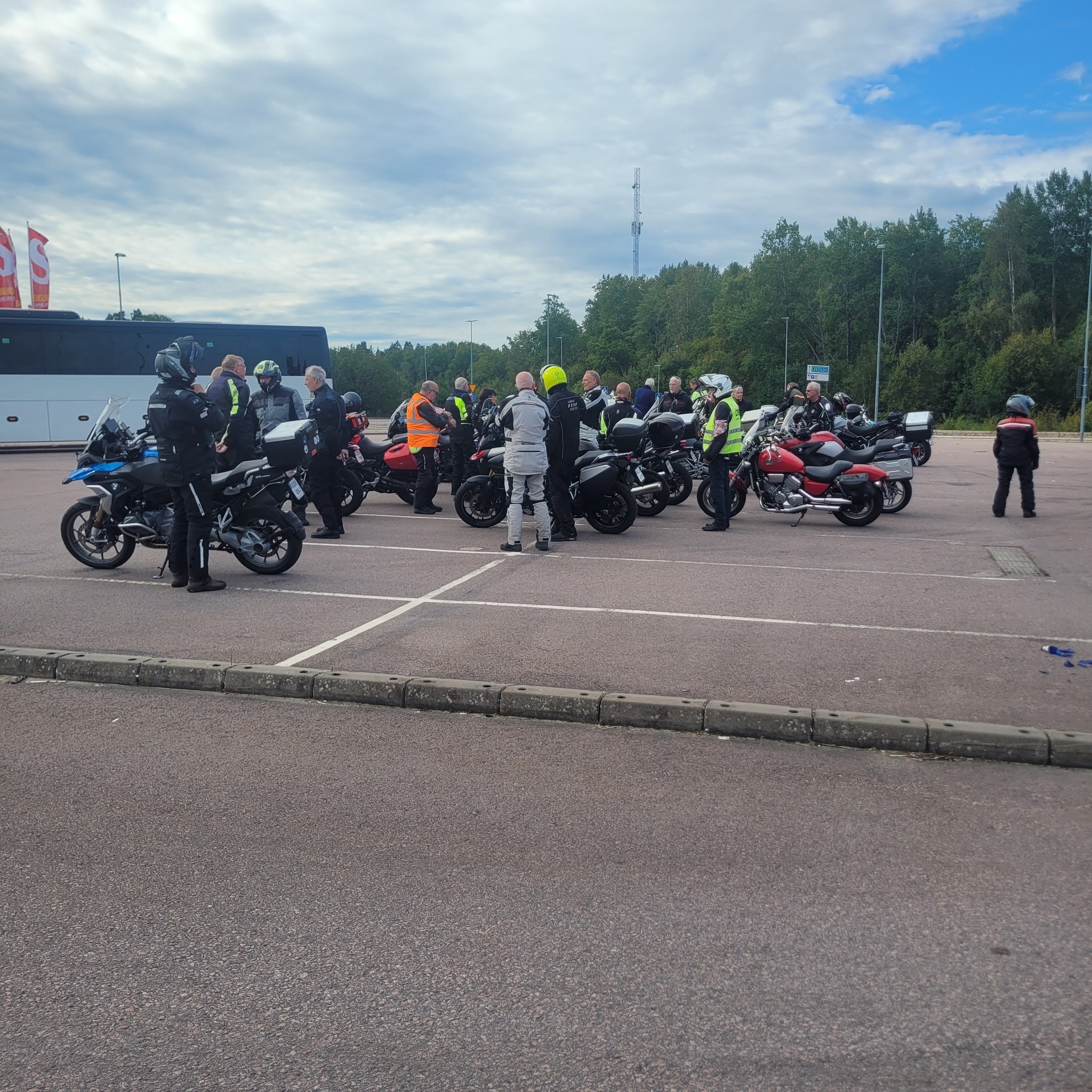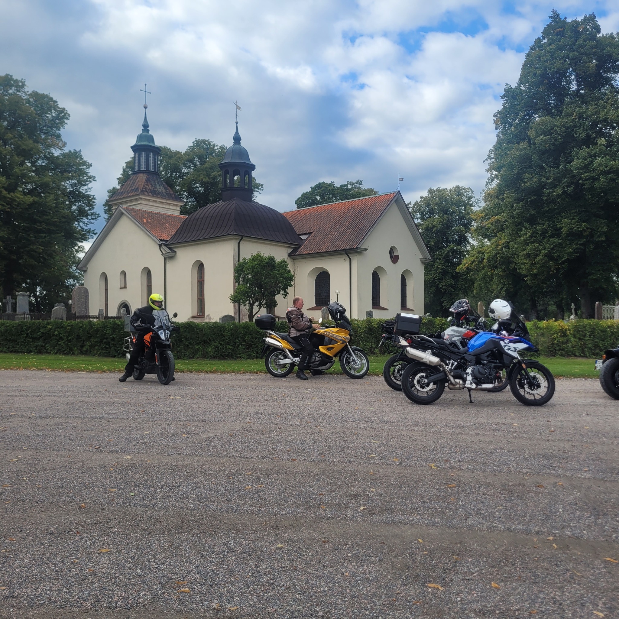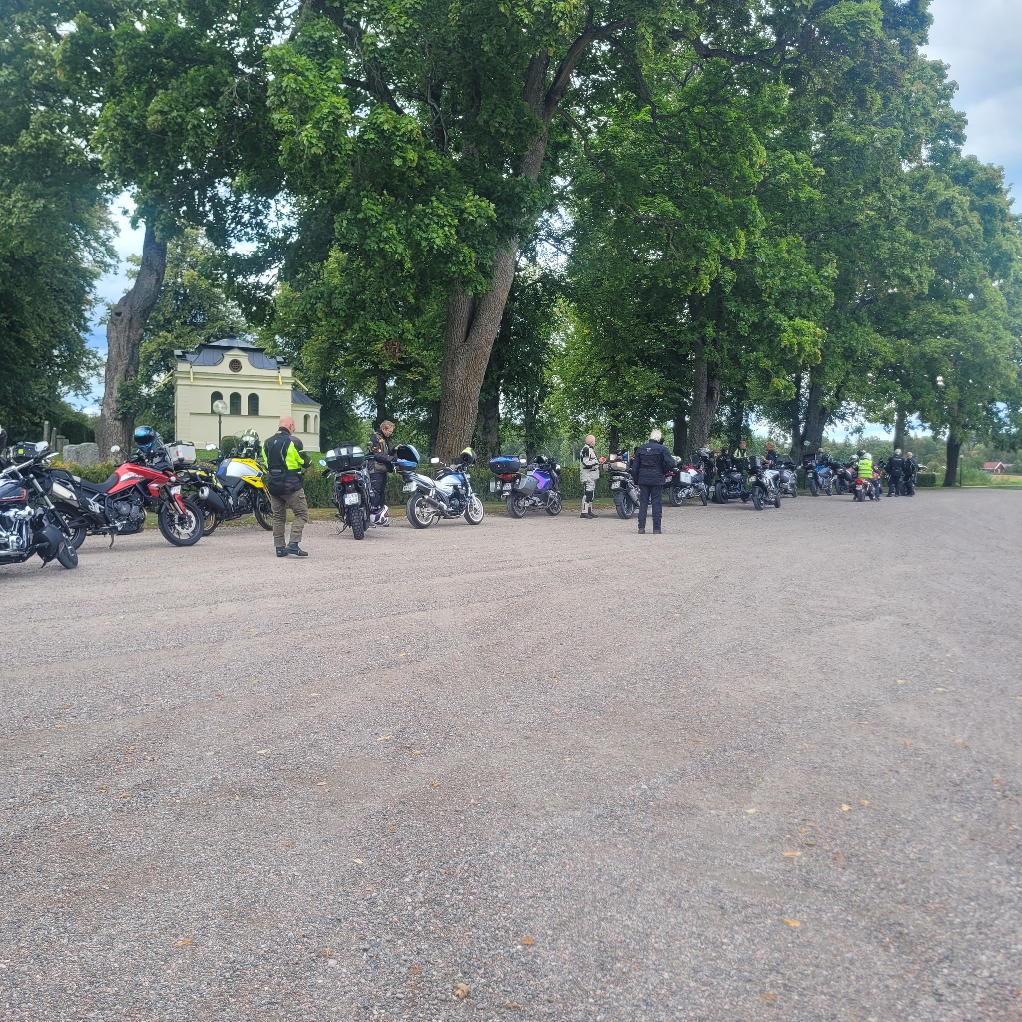 Dagtidstouringen lockade mycket folk denna gång. Vi hade besökare från bland annat Trosa, Mockfjärd och Bålsta. Det var 28 hojar som lämnade Ängelsberg för en tur i Dalarna. Kent ledde oss på slingriga vägar mot Söderbärke, Ulvshyttan till Spraxkya Kapell där vi tog en bensträckare. Fortsatte genom Borlänge, Repbäcken, Gangnef till flottbron i Älvnäs och till Luncuppehållet vid Morskogen. Givetvis blev det en avstickare till Siljansnäs och utsikten vid Buffils Anna. Söderut igen och den härligs vägen över Rexbo till fikastopp i Torsång. Lite små krokvägar till Hedemora där vi avslutade turen.